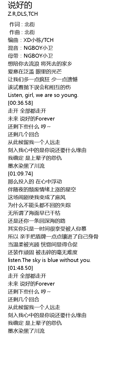 | [00:41.29] | wei lai shuo hao de Forever |