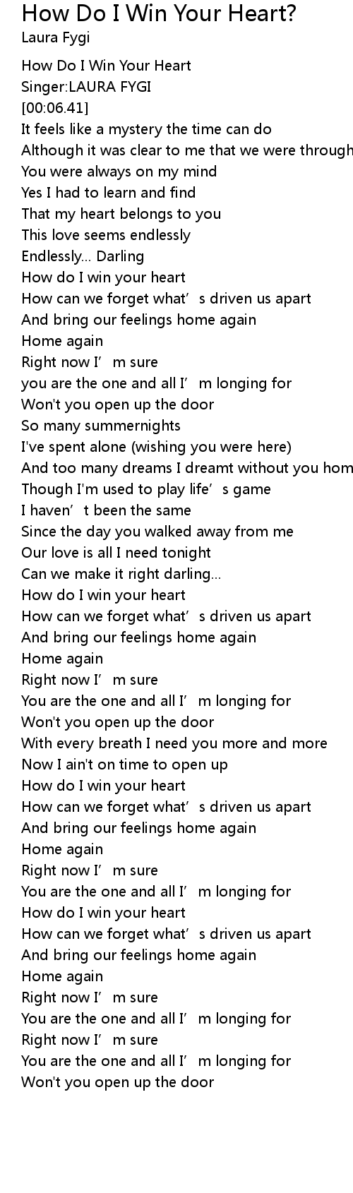 | [02:18.49] | How do I win your heart |