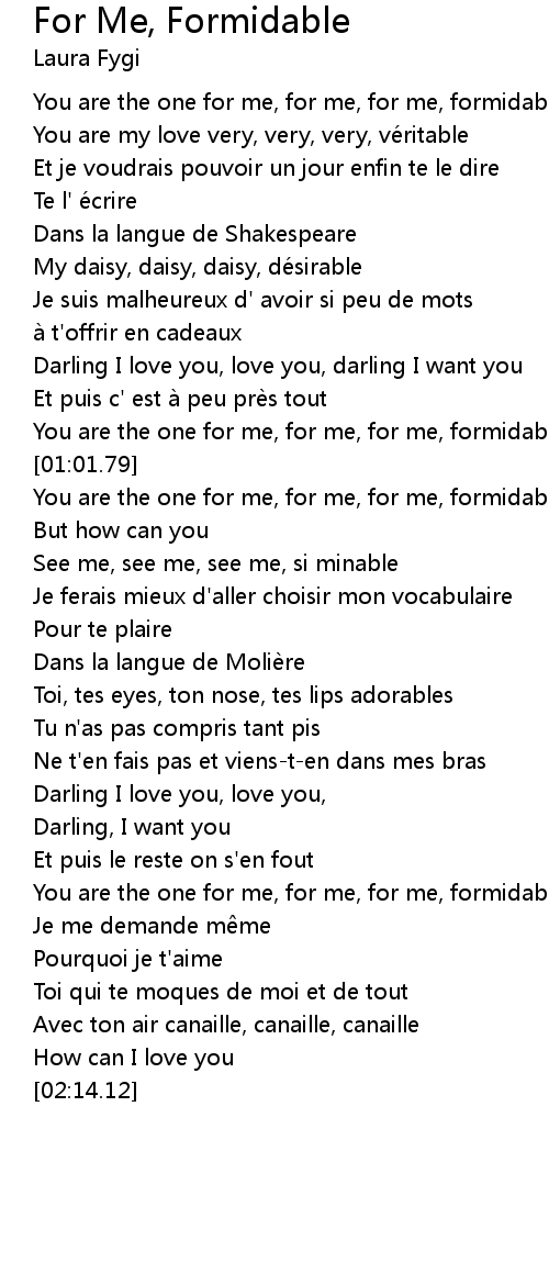 | [01:49.35] | You are the one for me, for me, for me, formidable |