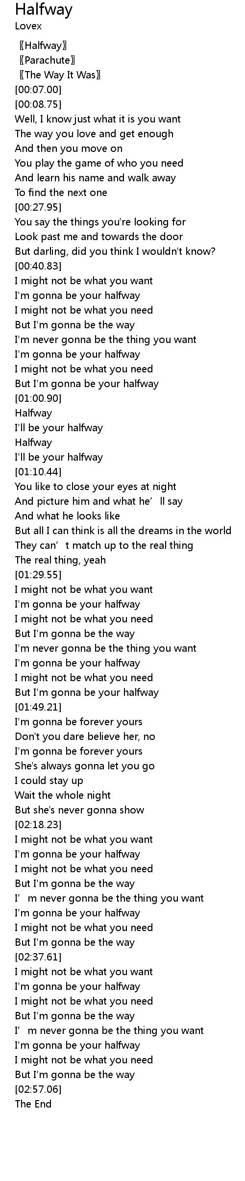 | [00:53.42] | I'm gonna be your halfway |