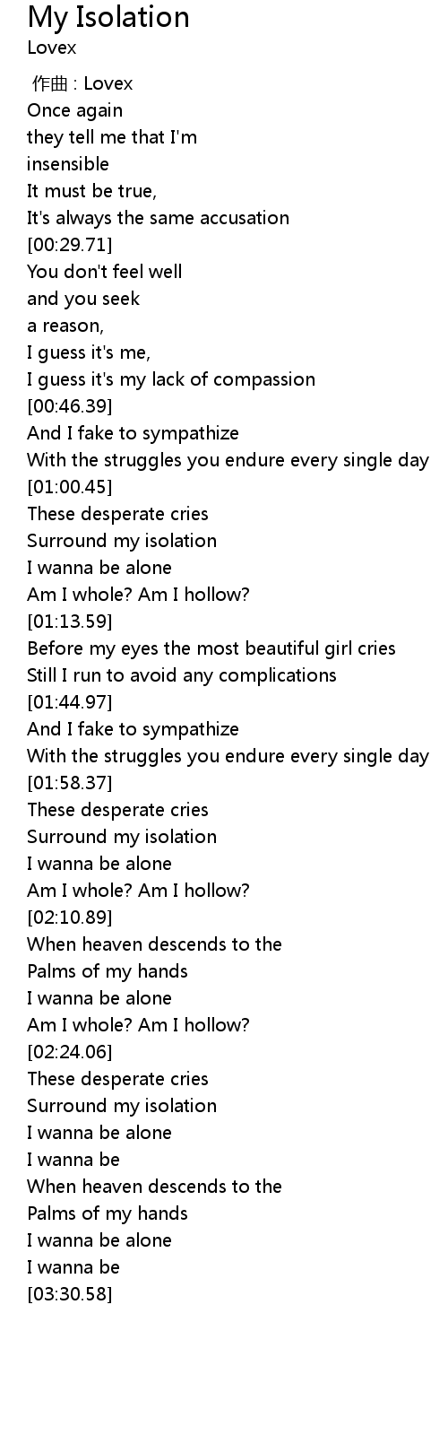 | [02:00.32] | Surround my isolation |