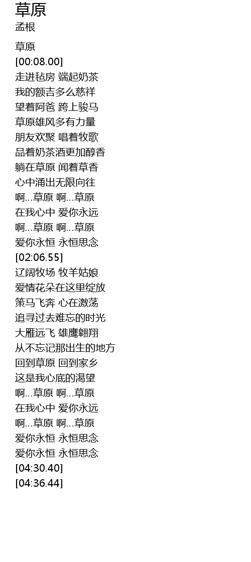 | [01:36.23] | 啊…草原 啊…草原 |