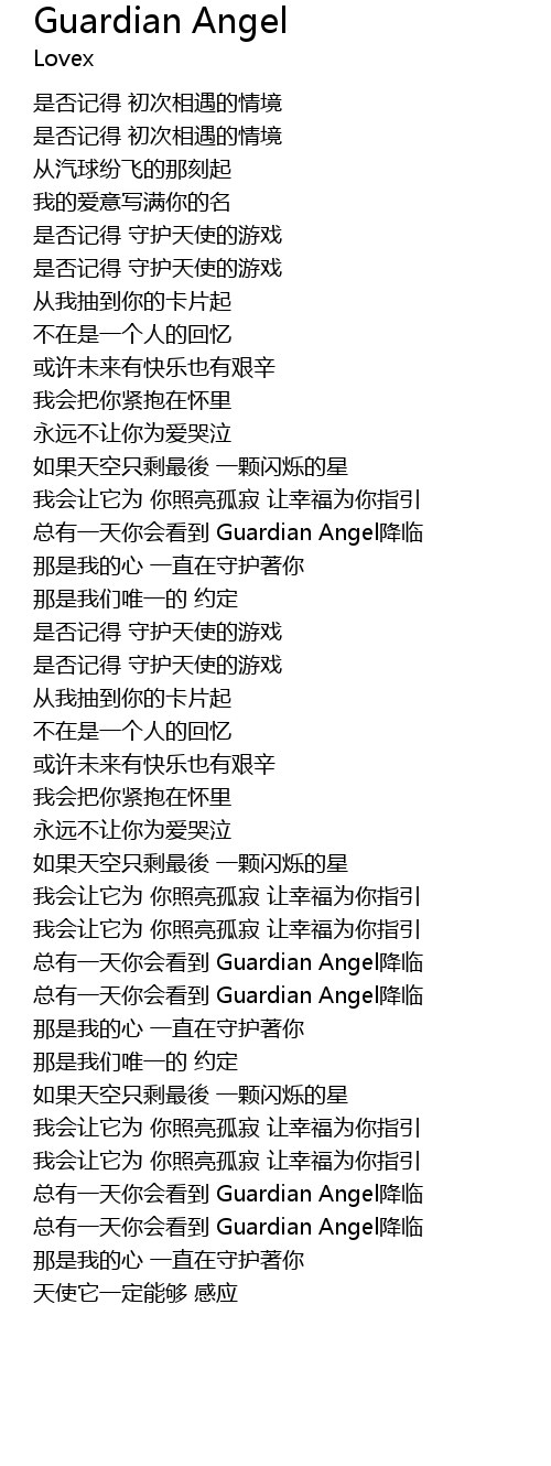 | [03:25.30] | zǒng yǒu yì tiān nǐ huì kàn dào Guardian Angel jiàng lín |