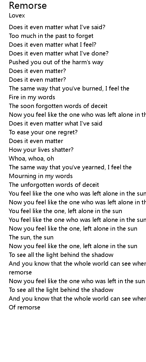 And you know that the whole world can see when you dry your heartless tears of remorse |