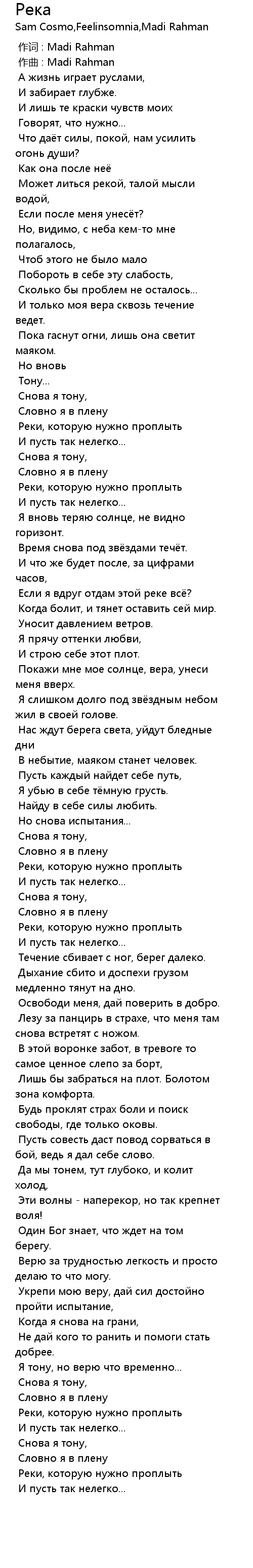 Река  Lyrics
