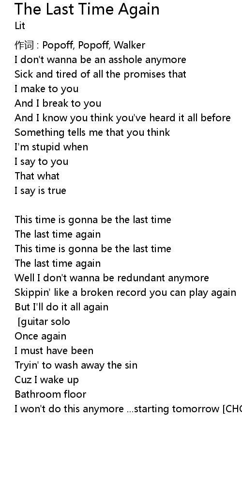 | I won't do this anymore ...starting tomorrow [CHORUS X 2] |