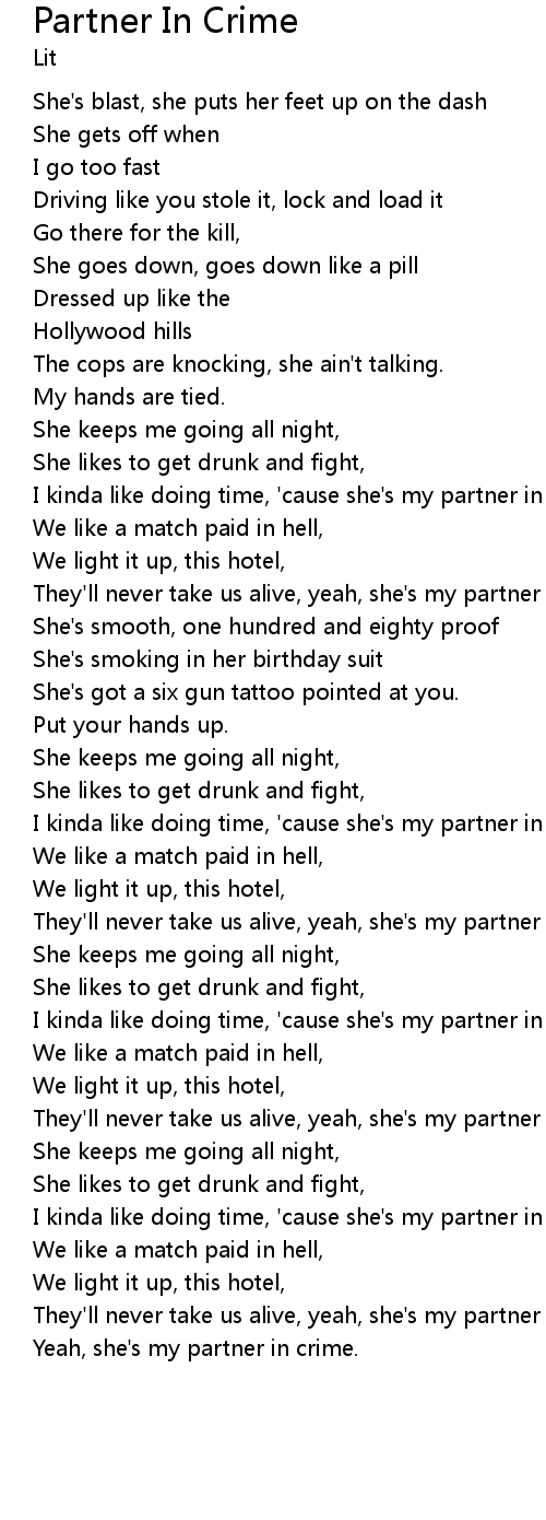 I kinda like doing time, 'cause she's my partner in crime. |