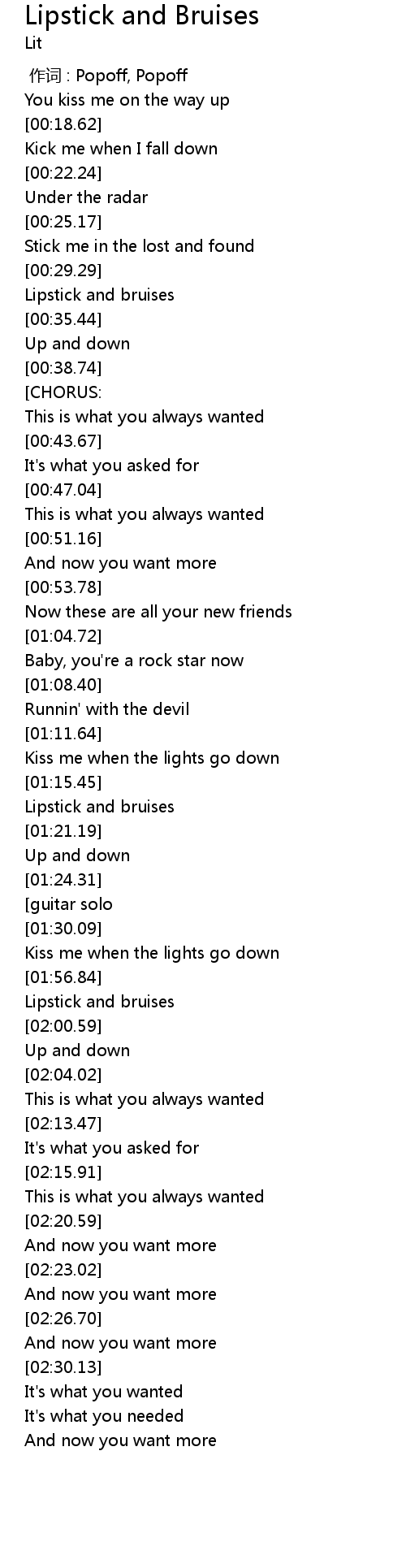| [01:58.40] | Lipstick and bruises |
