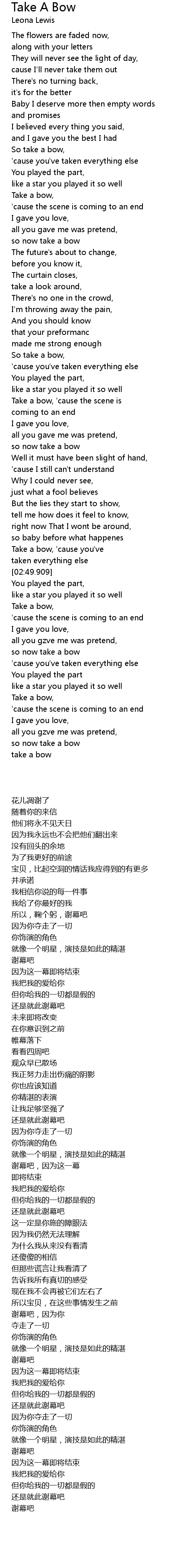 | [02:57.999] | Take a bow, |