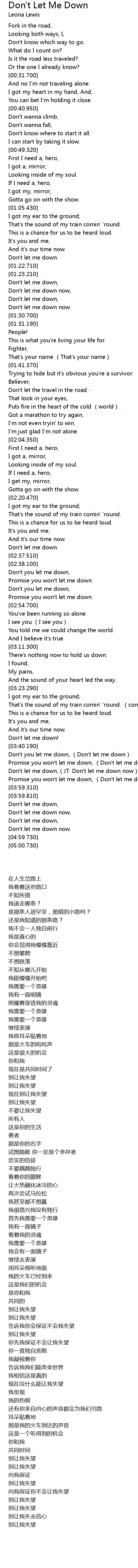 | [04:00.310] | Don' t let me down, |