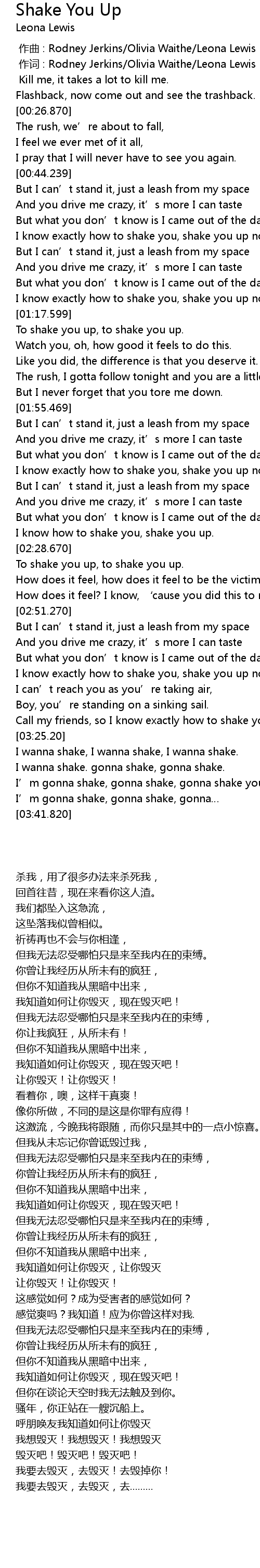 | [03:34.480] | I' m gonna shake, gonna shake, gonna shake you up. |