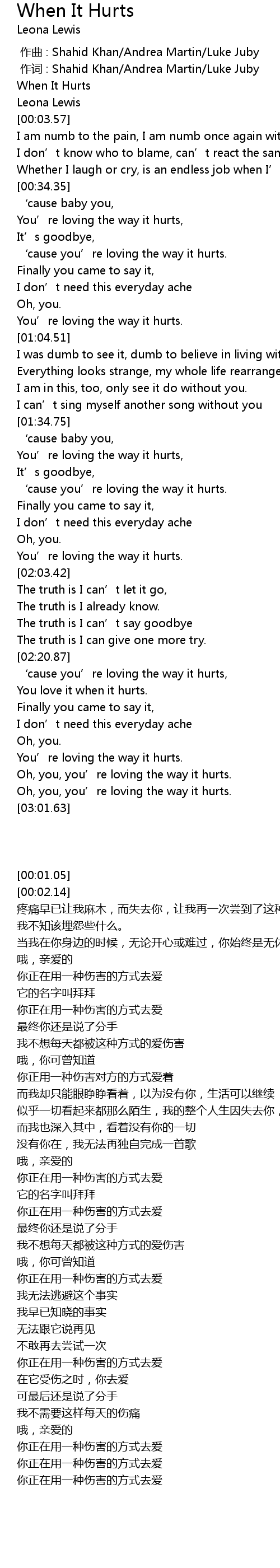 | [01:44.58] | ‘cause you’re loving the way it hurts. |