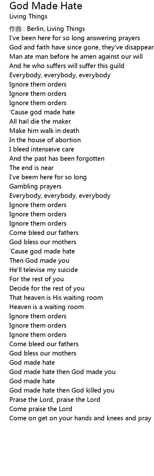 | 'Cause god made hate | |