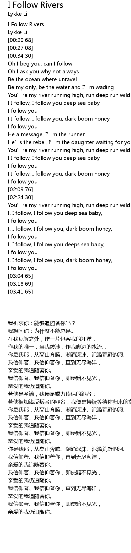 | [00:03.67] | I Follow Rivers |