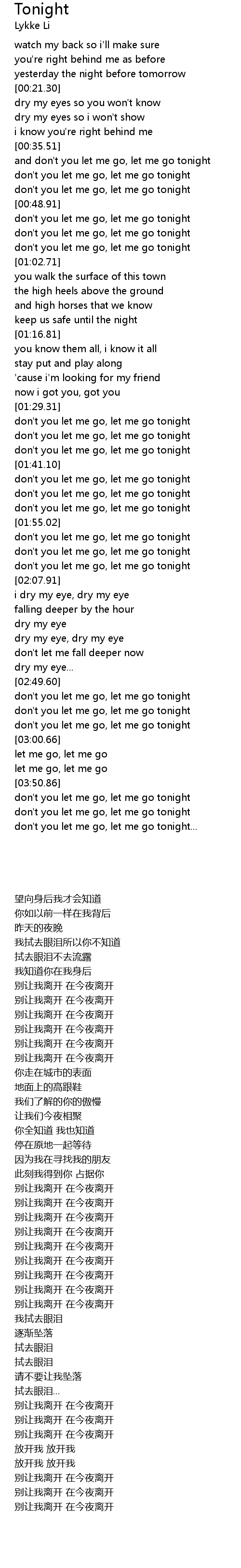 don't you let me go, let me go tonight... |