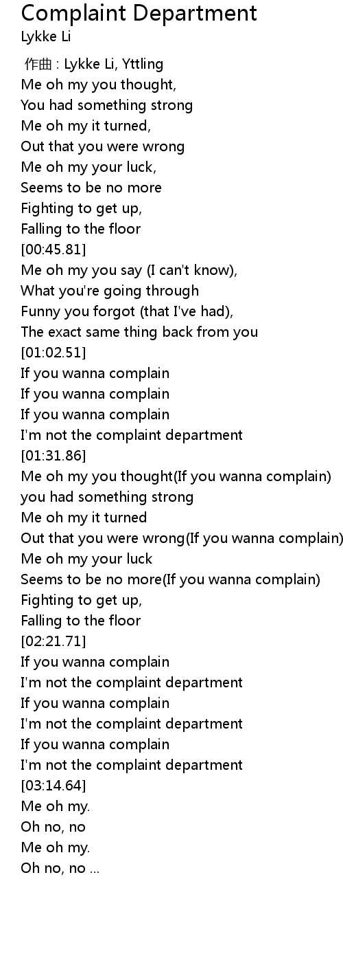 | [02:56.61] | I'm not the complaint department |