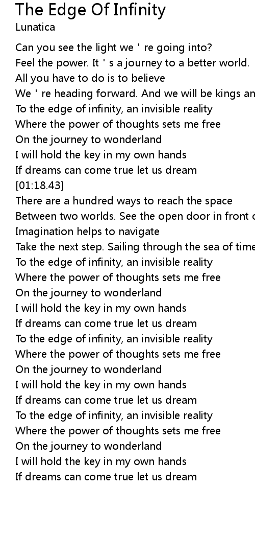 | [02:00.16] | To the edge of infinity, an invisible reality |