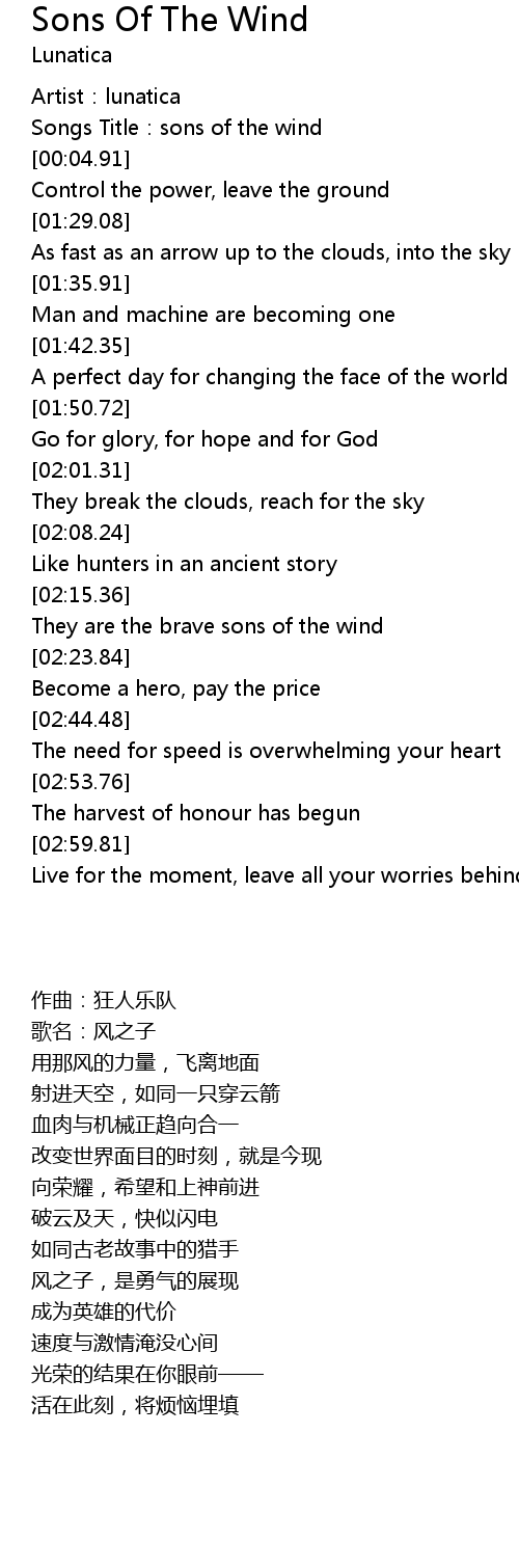 | [02:19.11] | They are the brave sons of the wind |