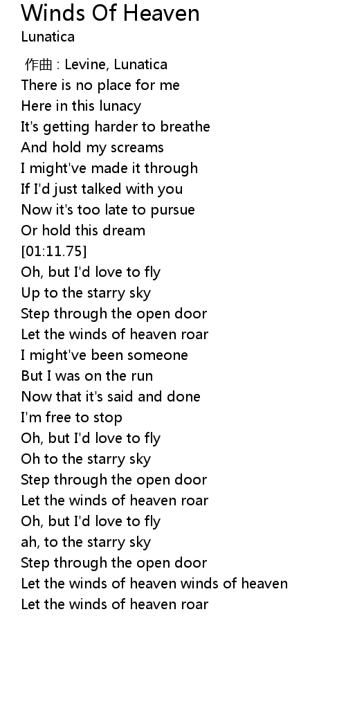| [03:24.19] | Let the winds of heaven winds of heaven |