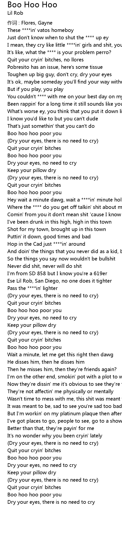 | Toughen up big guy, don' t cry, dry your eyes | |