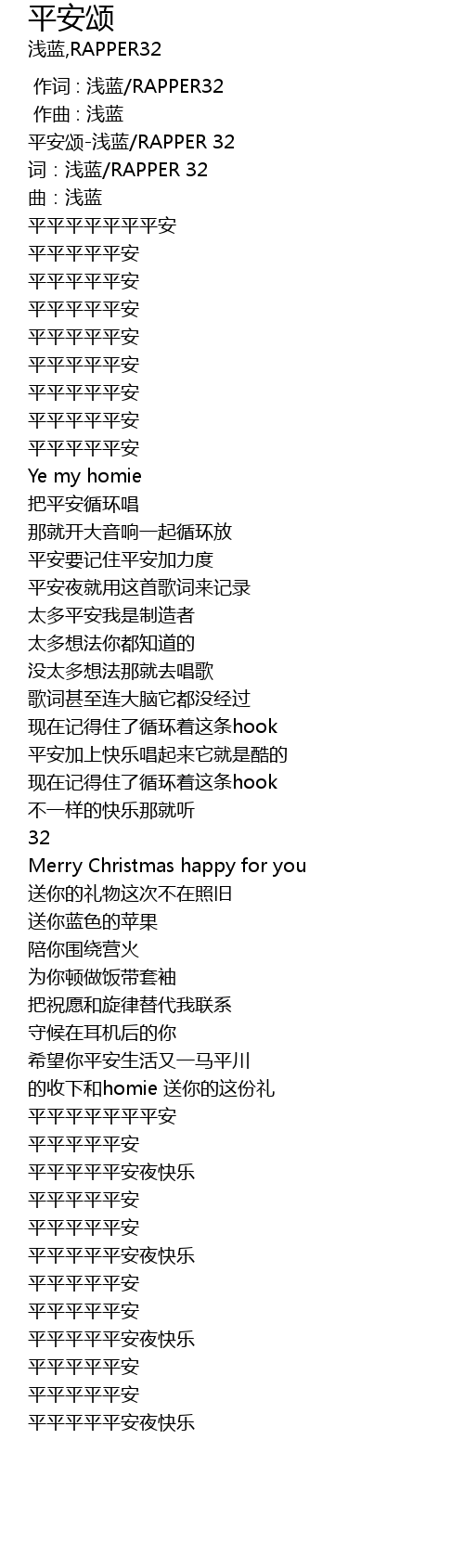 | [00:00.611] | 平安颂-浅蓝/RAPPER 32 |