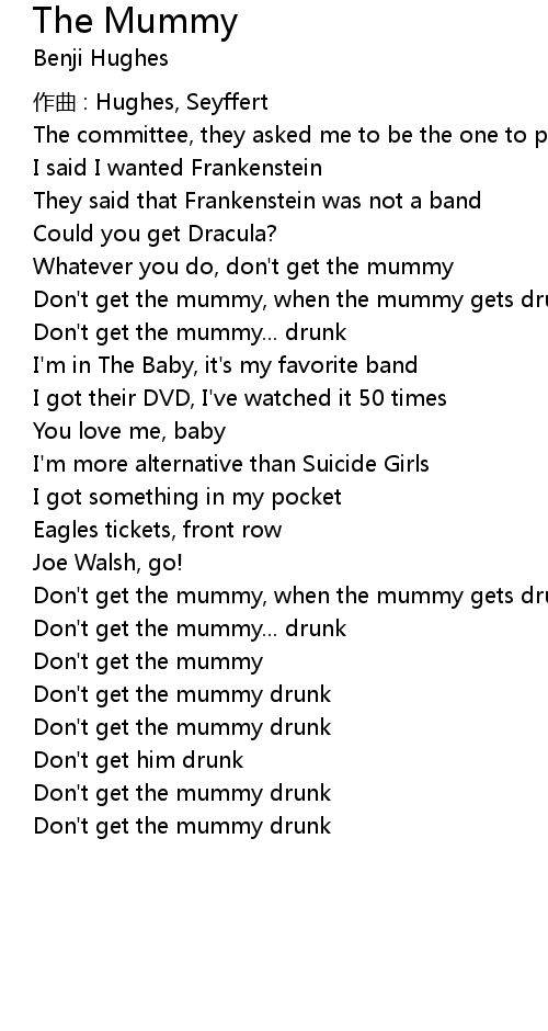 | Don't get the mummy, when the mummy gets drunk he unravels (x3) | |