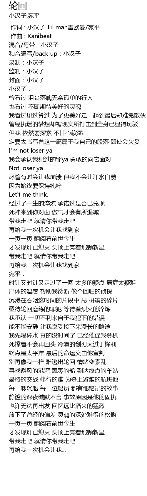 | [00:00.000] | 作词 : 小汉子_Lil man雷欧曼/宛平 |
