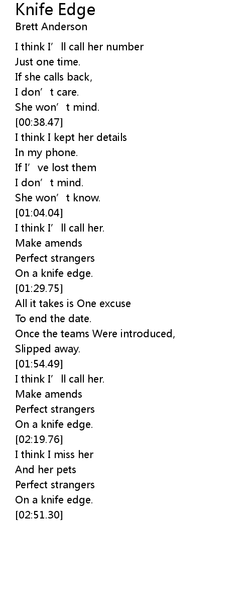 | [01:25.80] | On a knife edge. |