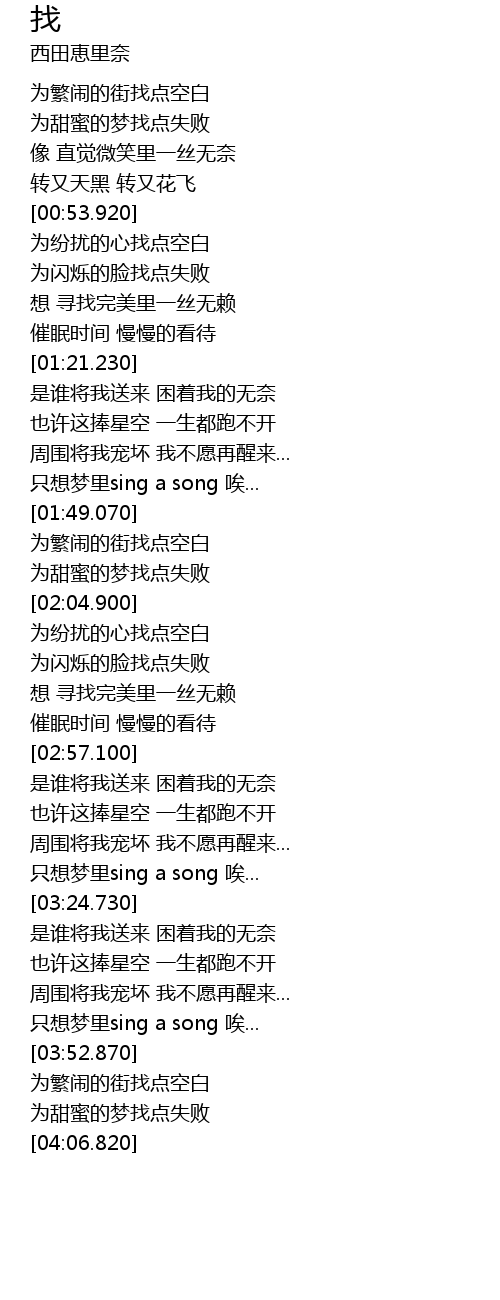 | [04:00.760] | 为甜蜜的梦找点失败 |