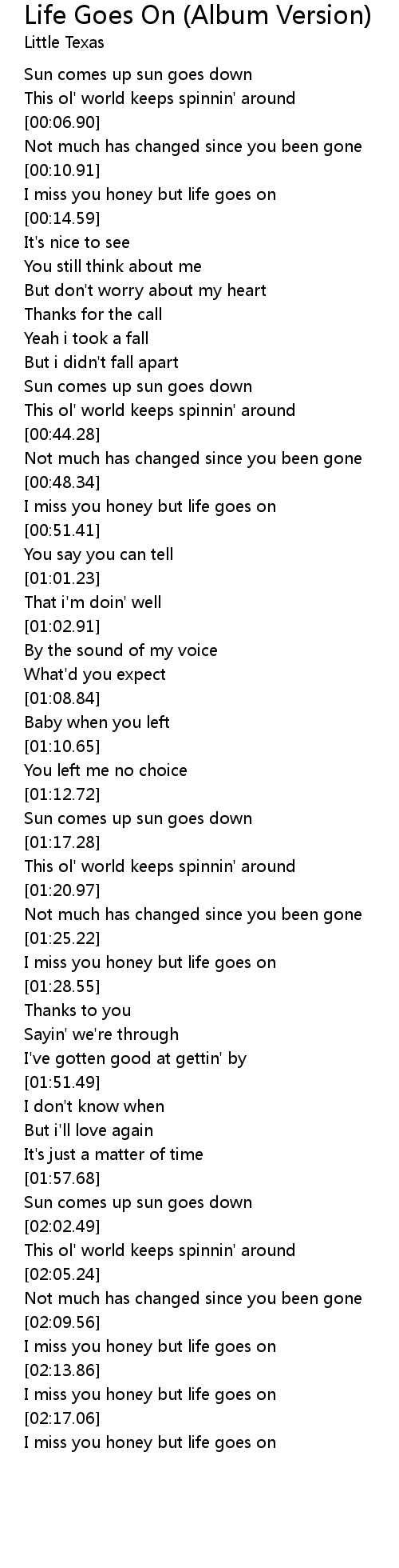 I miss you honey but life goes on |