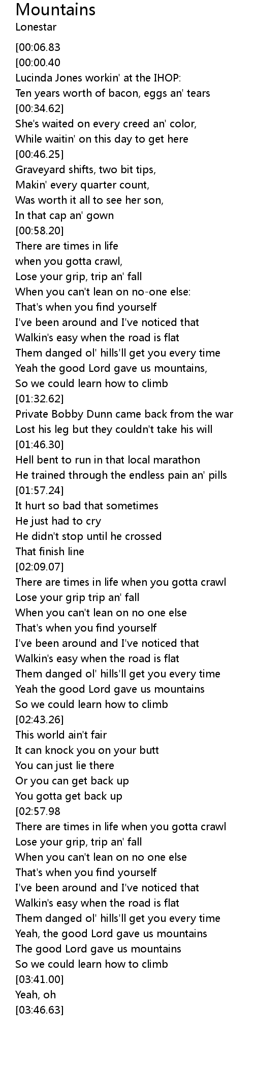 Yeah the good Lord gave us mountains, |