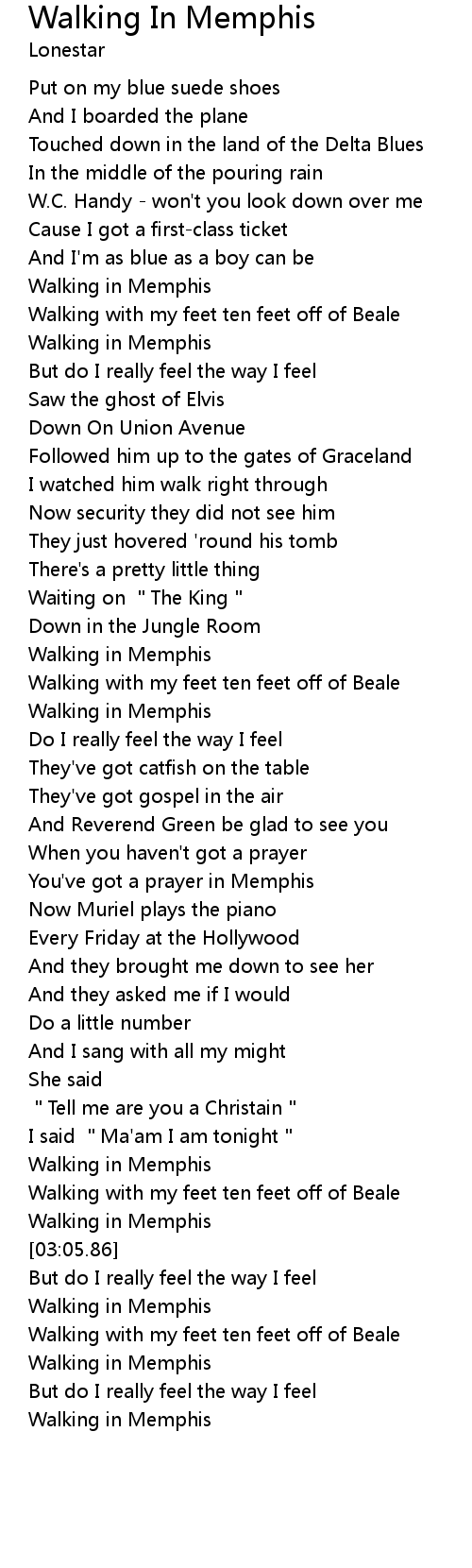| [02:12.39] | You' ve got a prayer in Memphis |