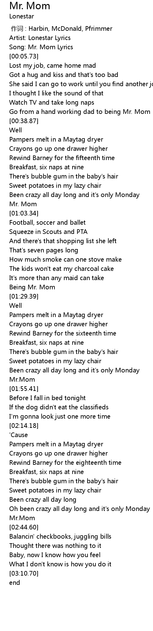 | [00:05.35] | Song: Mr. Mom Lyrics |