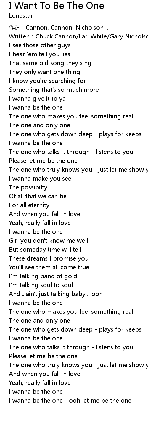 | I wanna be the one - ooh let me be the one |