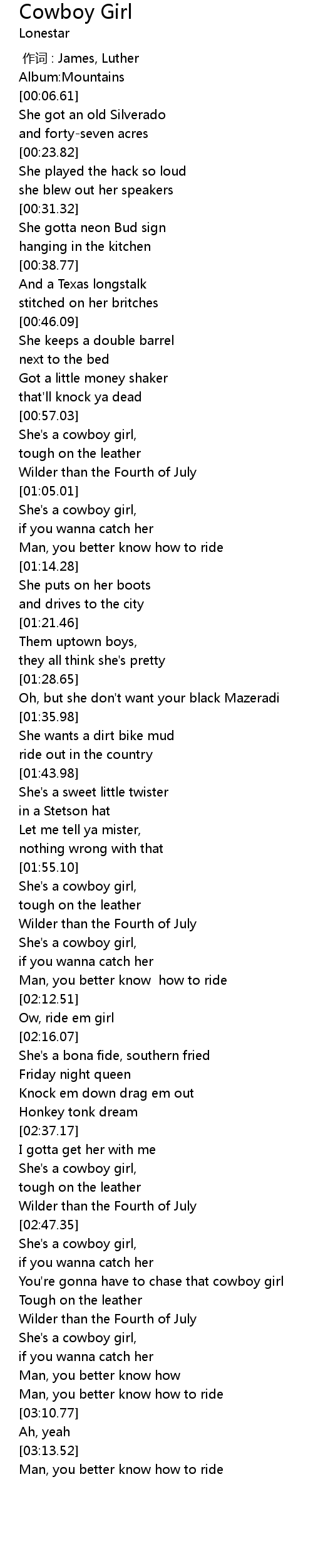 | [02:51.98] | You're gonna have to chase that cowboy girl |