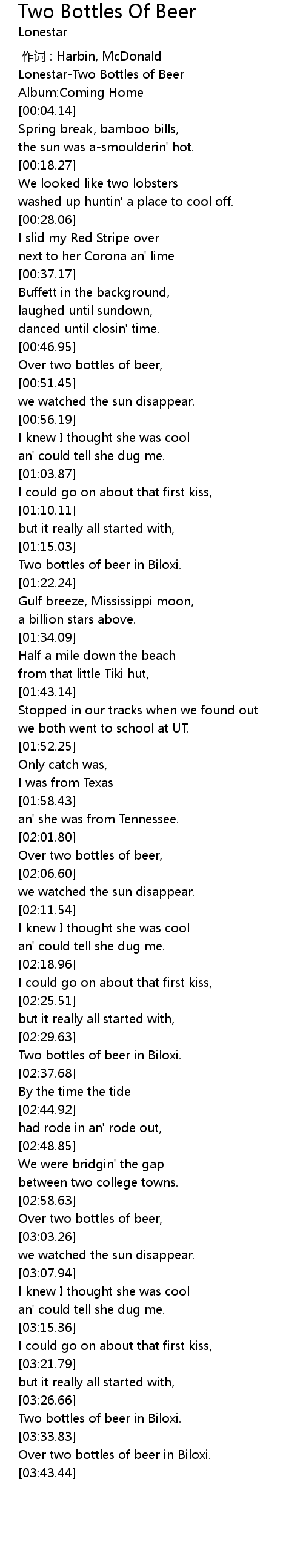 | [00:01.02] | Lonestar-Two Bottles of Beer |