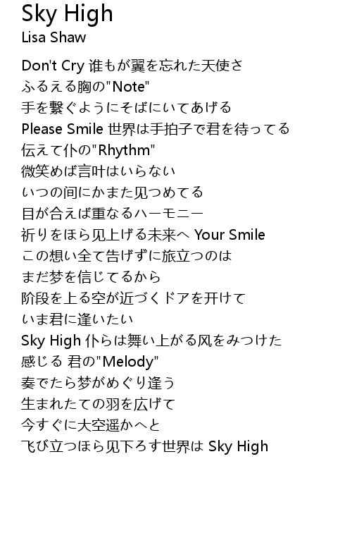 | 飞び立つほら见下ろす世界は Sky High |