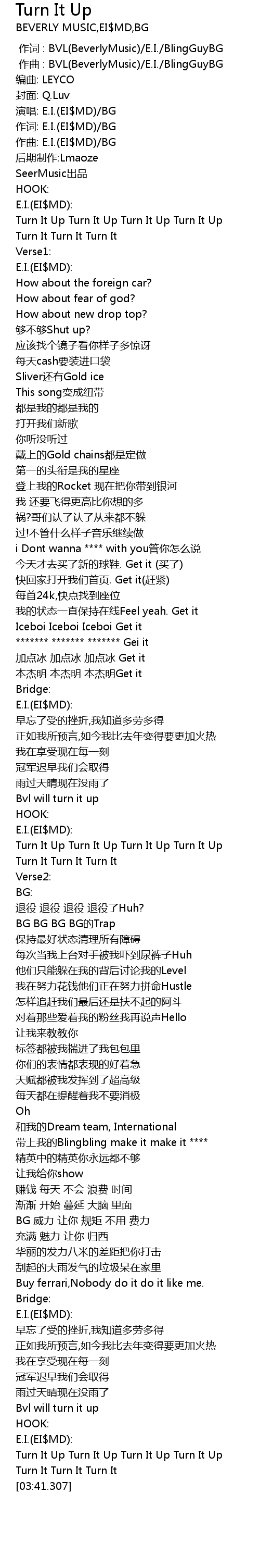 | [03:11.492] | Turn It Up Turn It Up Turn It Up Turn It Up |