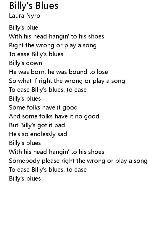 | To ease Billy's blues, to ease | |