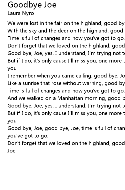 Don't forget that we loved on the highland, good bye, Joe, goodbye, Joe |