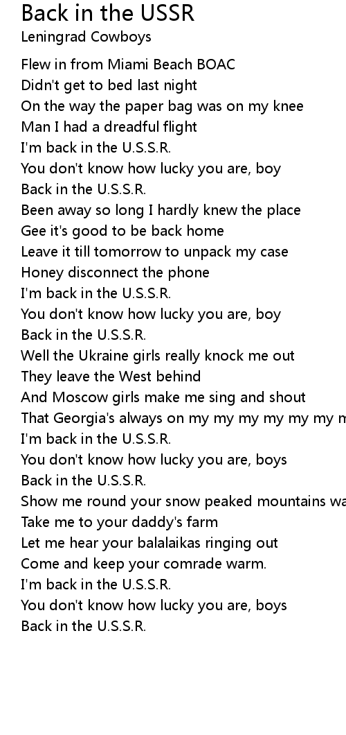I'm back in the U.S.S.R. |