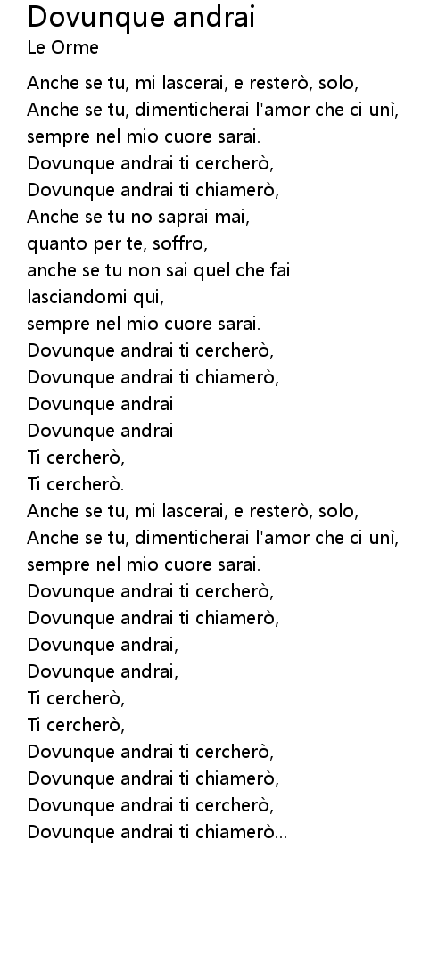 | Dovunque andrai ti cerchero, | |