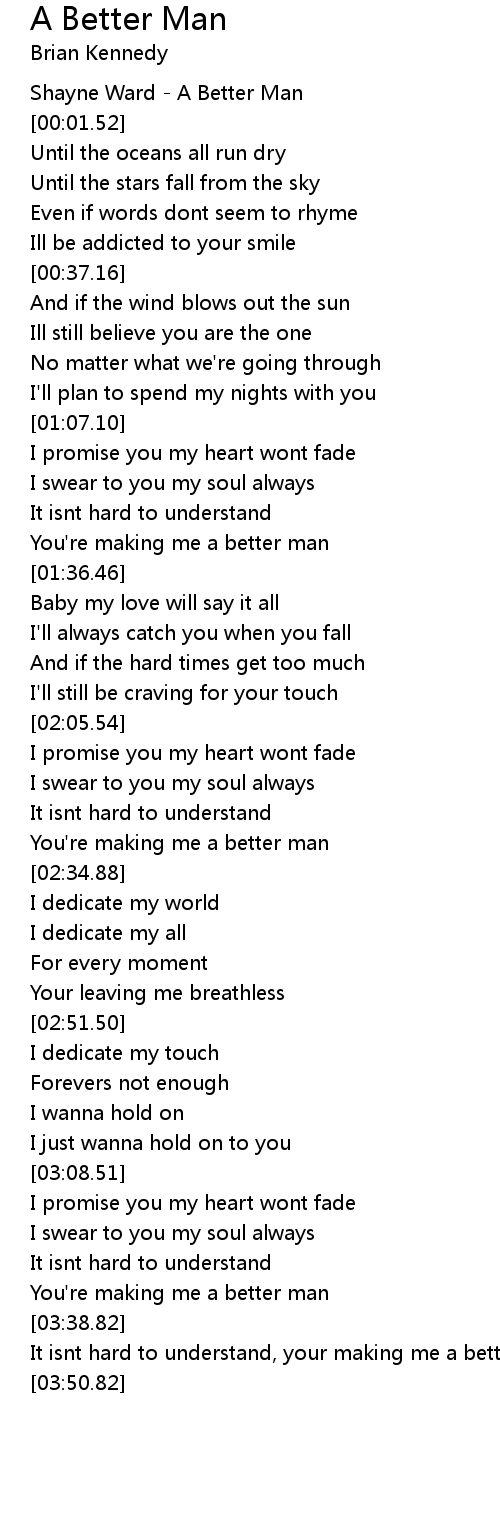 It isnt hard to understand, your making me a better man |