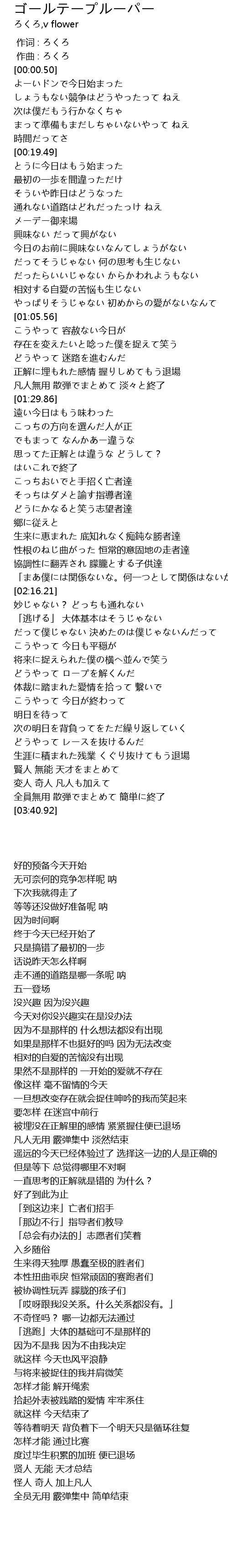 | [03:26.83] | 生涯に積まれた残業 くぐり抜けてもう退場 |
