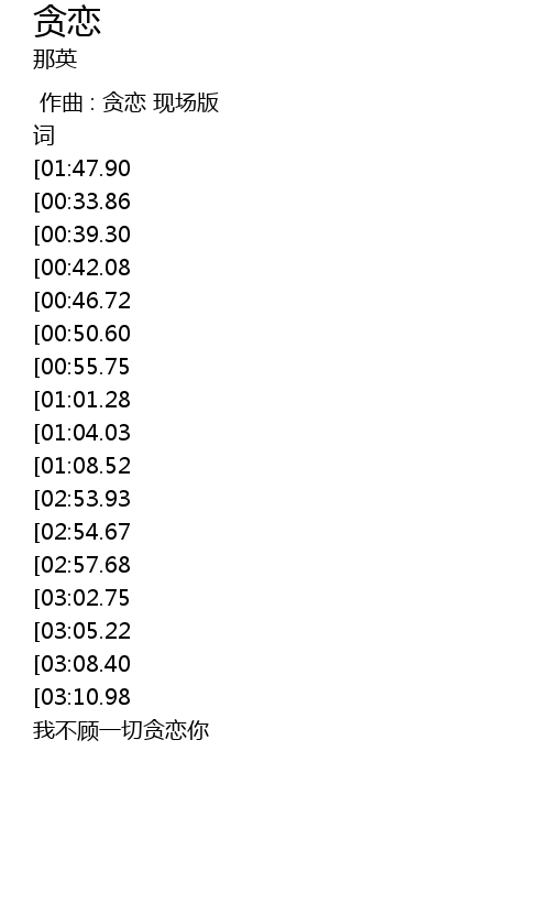 | [03:32.90][03:10.98][01:30.18] | 我不顾一切的贪恋你 |