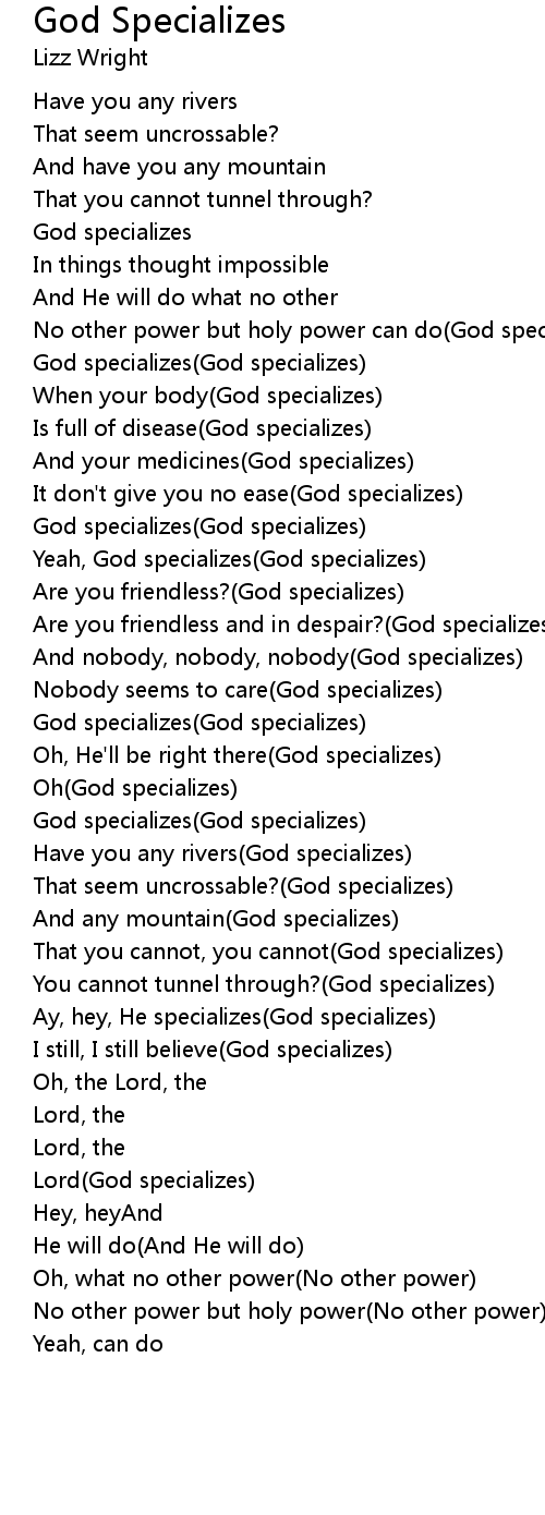 Yeah, God specializes(God specializes) |