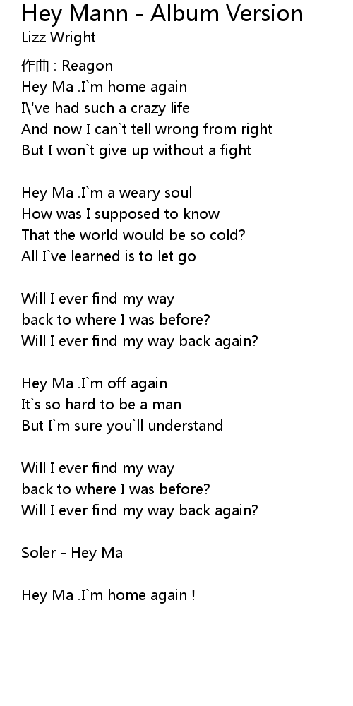 | Hey Ma . I m a weary soul | |