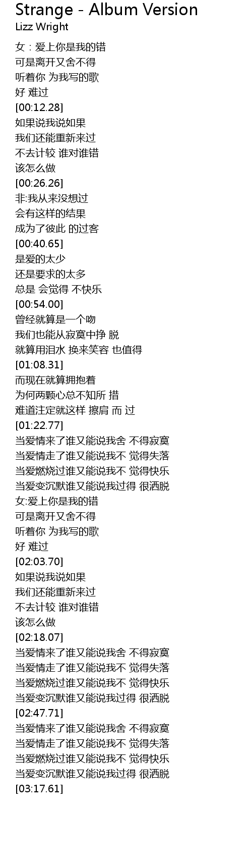 | [02:12.53] | 不去计较 谁对谁错 |