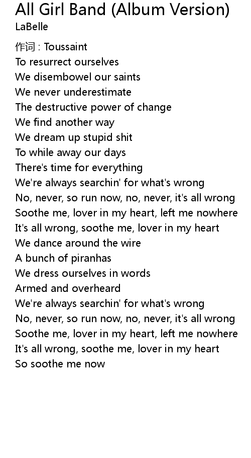 | Song | All Girl Band (Album Version) |