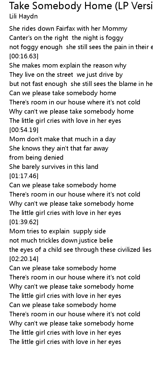 Can we please take somebody home |